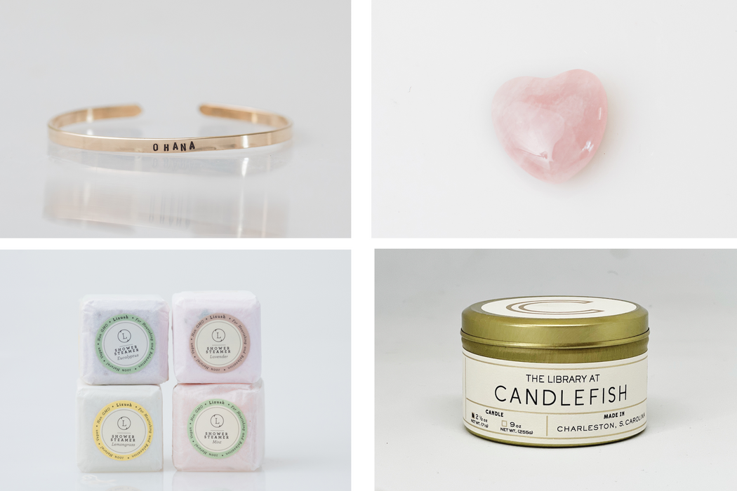 - Soy Candle: Something to help let the light in. Fragrant notes of stone fruit, rose, and moss in a 2.5-ounce gold-colored tin; 15-20 hour burn time. Hand poured by Candlefish in Charleston, SC.