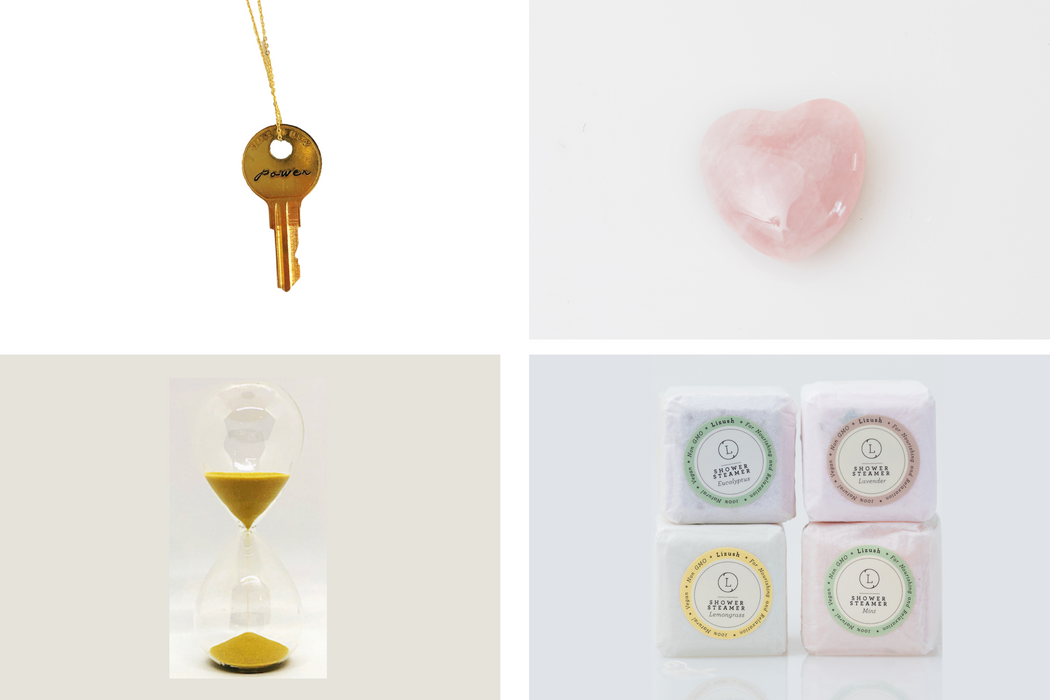 • Hourglass: This hourglass acts as a visual reminder that she should take five minutes for herself. Custom-made with champagne-colored sand.